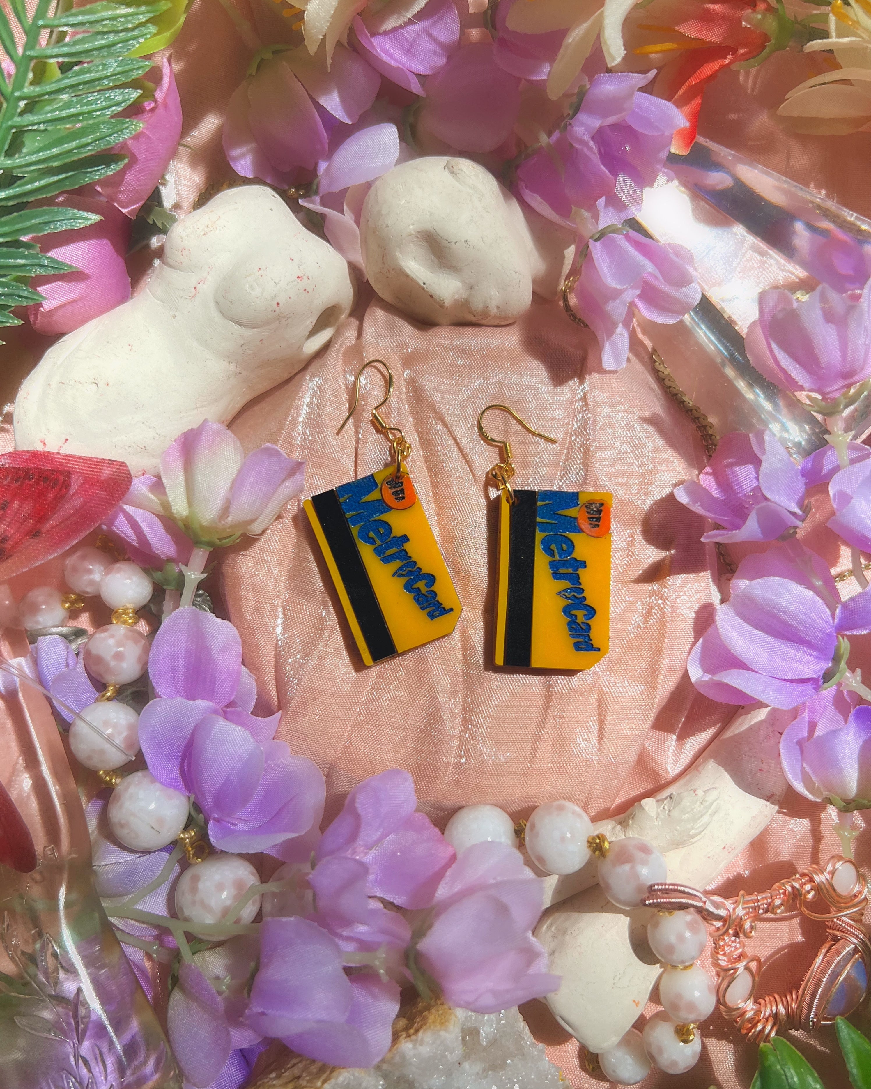 I thought it would be really cute to have some metro card earrings for this mini drop! You can also see them in Chappell’s hair in the ‘Hair City’ design. Also, check out the little broken hearts replacing the ‘o’ in ‘metro’.