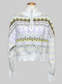 0X Arizona soft white knit sweater with green, purple, and yellow geometric pattern, and “stay chill” lettering