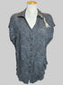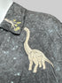 1X black pixelated “Jurassic Park”short sleeve button down with dinosaur and tree embroidery on front
