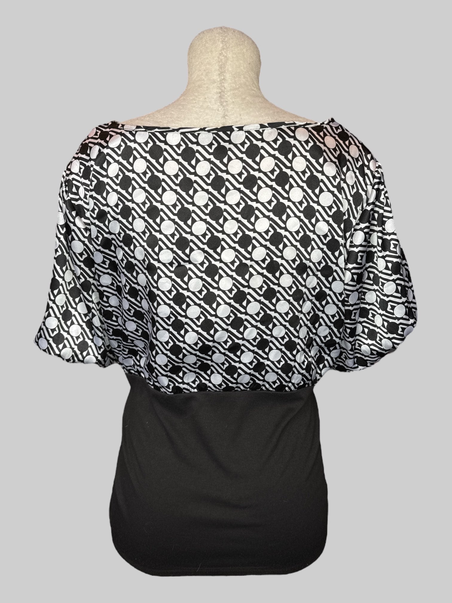 Top 100% polyester, Bodice 71% polyester 24% rayon 5% spandex