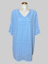 1X light blue short sleeve dress with fluffy polka dots, and tiered flowy sleeves