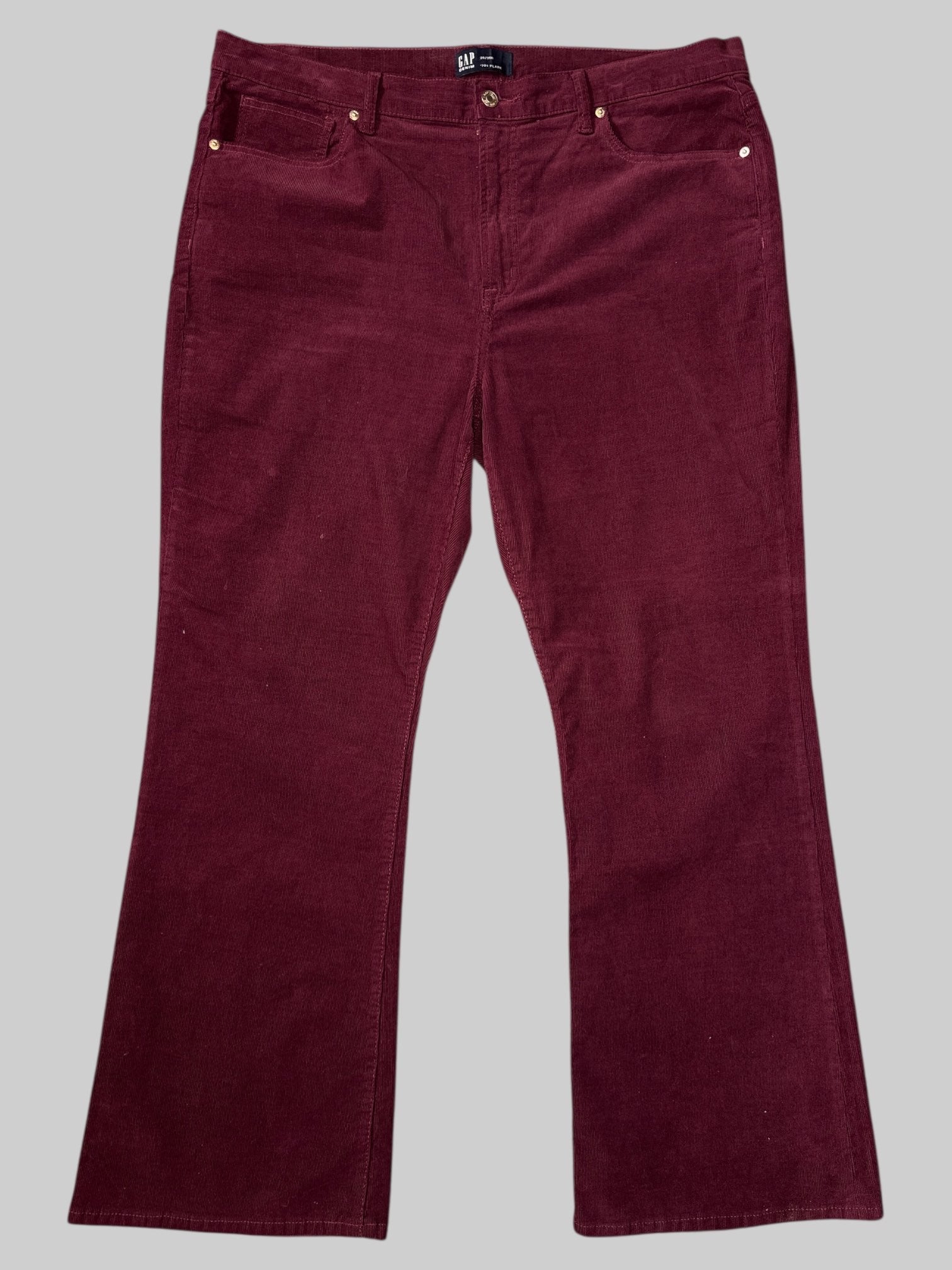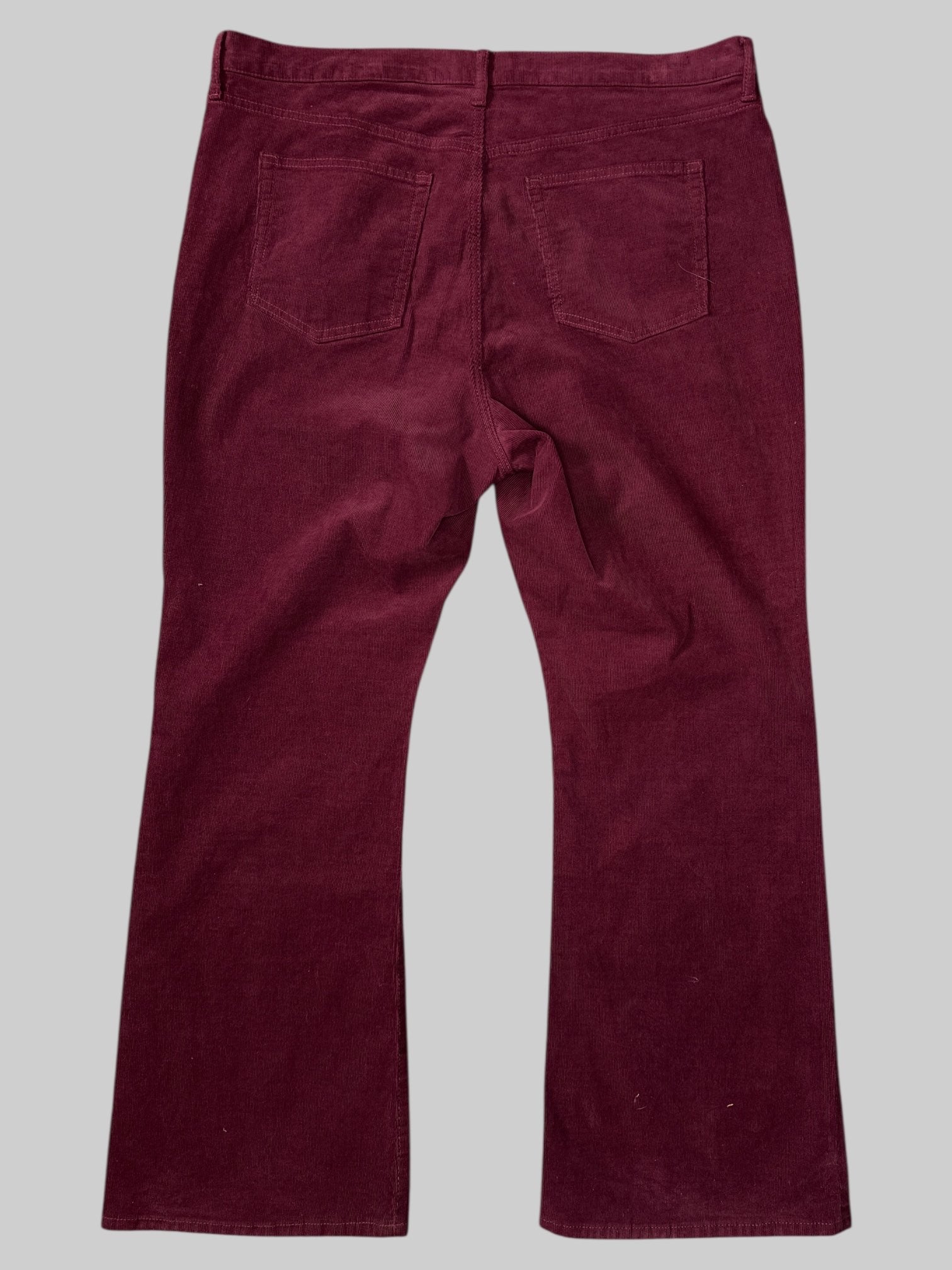 1X Maroon corduroy pants with belt, loops, pockets, and flared legs
