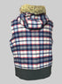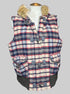 1X Old Navy tan, red, and blue plaid flannel vest with faux fur hood