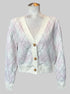 1X white, gray, and pink button up cardigan