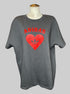 2X Adidas black thick T-shirt with red embroidered logo on back, and graphic on front