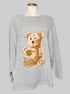 2X Aqua Blues heathered gray soft sweater with teddy bear graphic