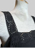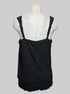 2X black sleeveless top with lattice cutouts and lettuce trim