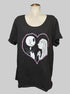 2X black T-shirt with The Nightmare before Christmas graphic on front, and “true love never dies” on back