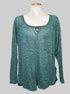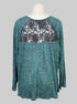 2X Heathered green long sleeve top with black lace detail details on front and sides