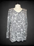 2X Lane Bryant gray knit long sleeve blouse with black florals and black trim lining