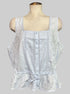 2X light blue sleeveless button-down top with drawstring on front, and lace details