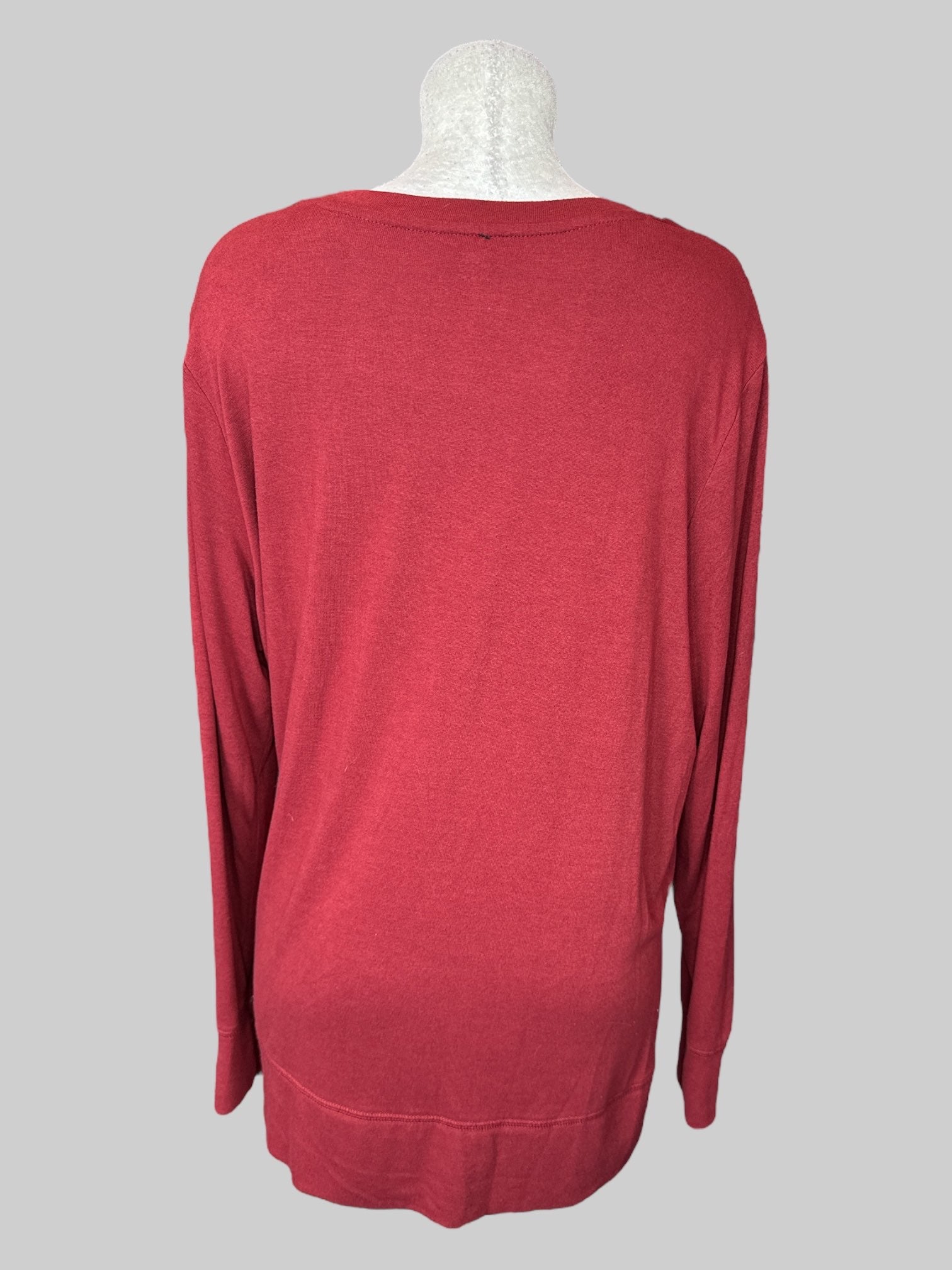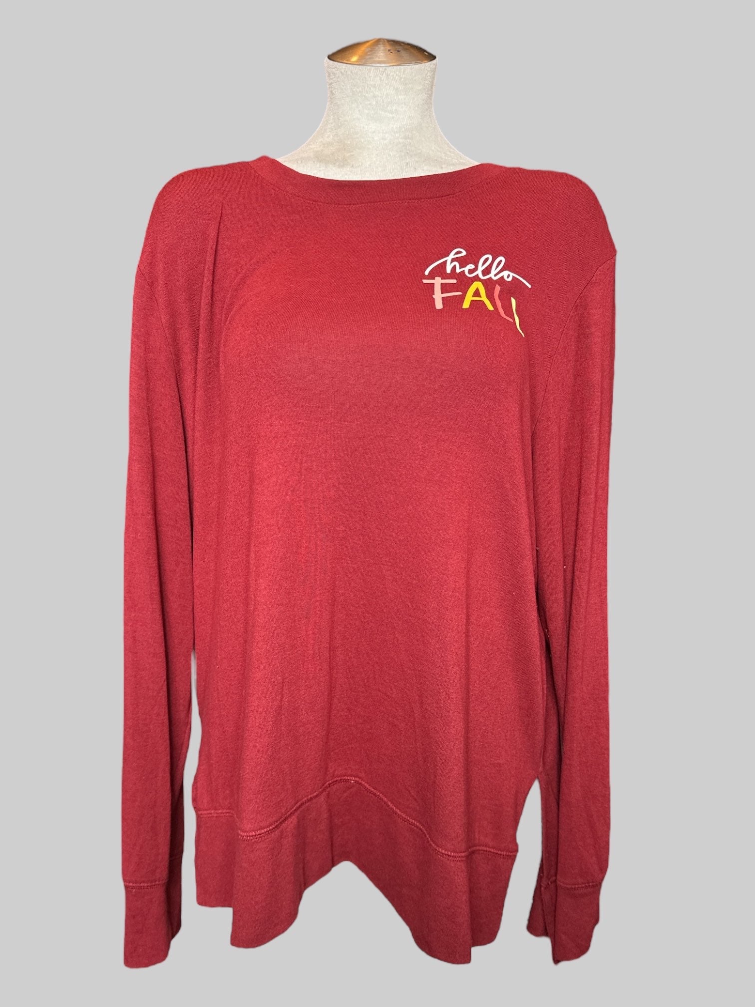 2X Maroon “Hello Fall” long sleeve flowy top with slits on side