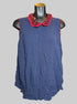 2X ModCloth sleeveless navy blue blouse with red and black checkered trim and collar and buttons on back
