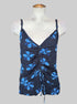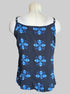 2X Navy blue flowy sleeveless top with blue geometric pattern and ruching in middle