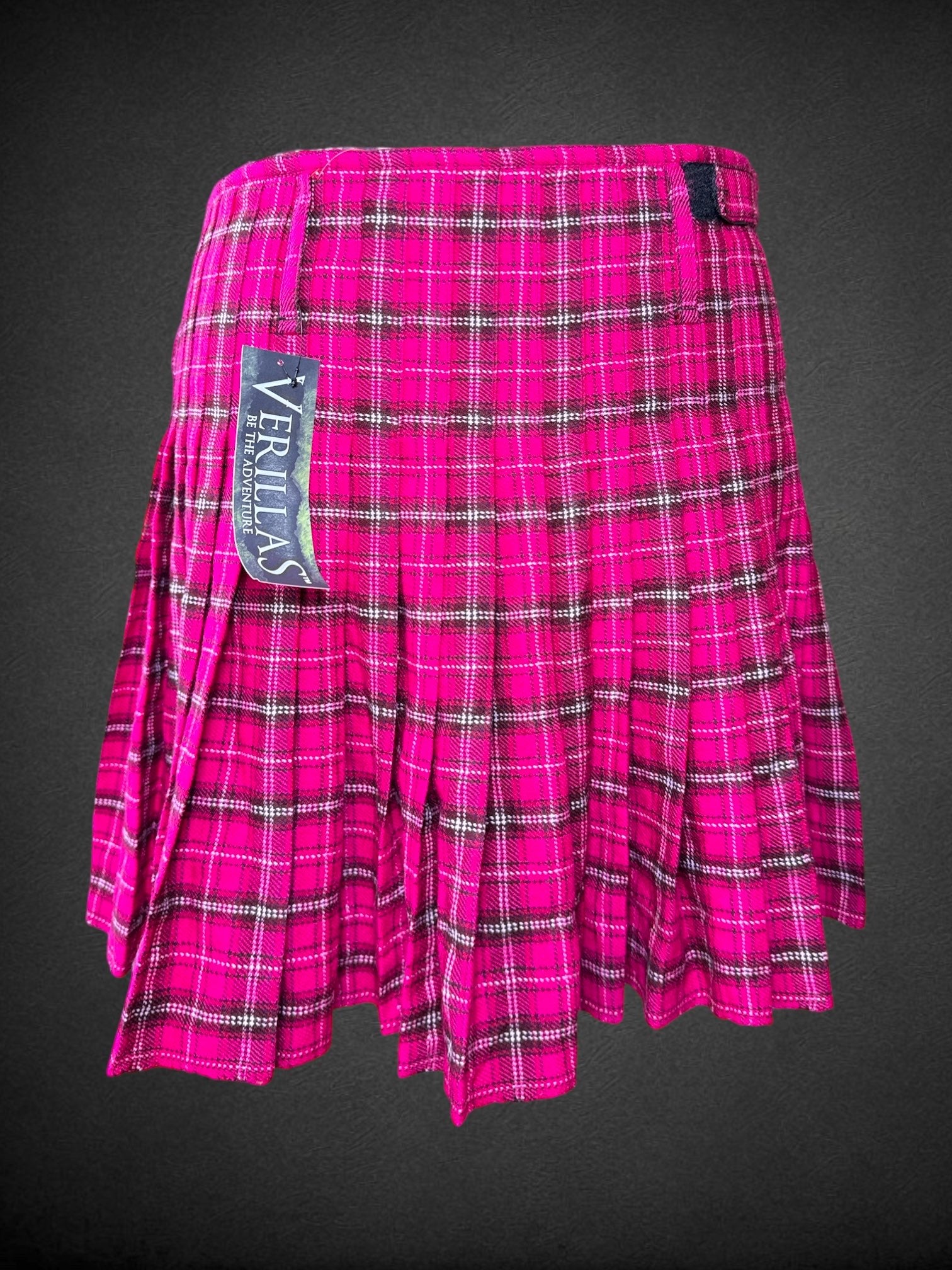 2X NWT VERILLAS hot pink, white, red, and black plaid kilt with Velcro wrap