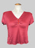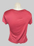 2X red ribbed t shirt with rose embellishments and lettuce trim