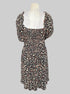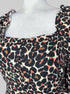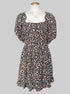 2X tan dress with black brown and pink animal, print dress with balloon sleeves and shirred back