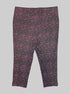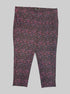 3X Black pants with pink, purple and blue, abstract design, fake back pockets, and real front pockets