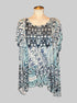 3X Blue, turquoise and white multi pattern soft short sleeve top