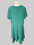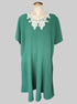 3X Dark green short sleeve dress with white detail on neckline, zipper on back, and pockets