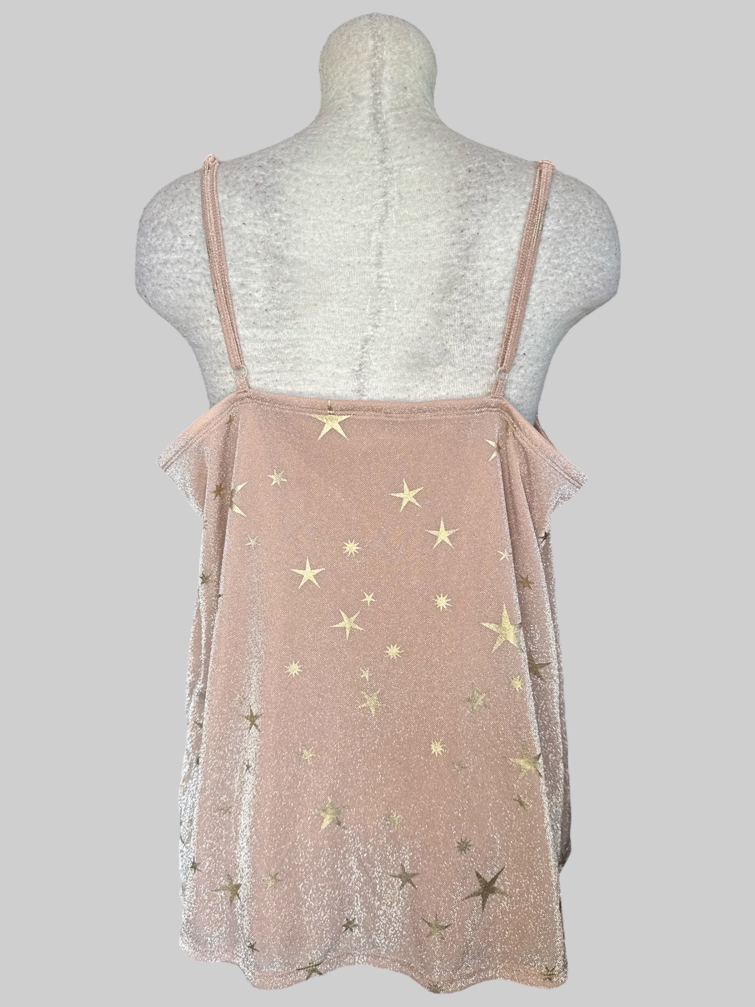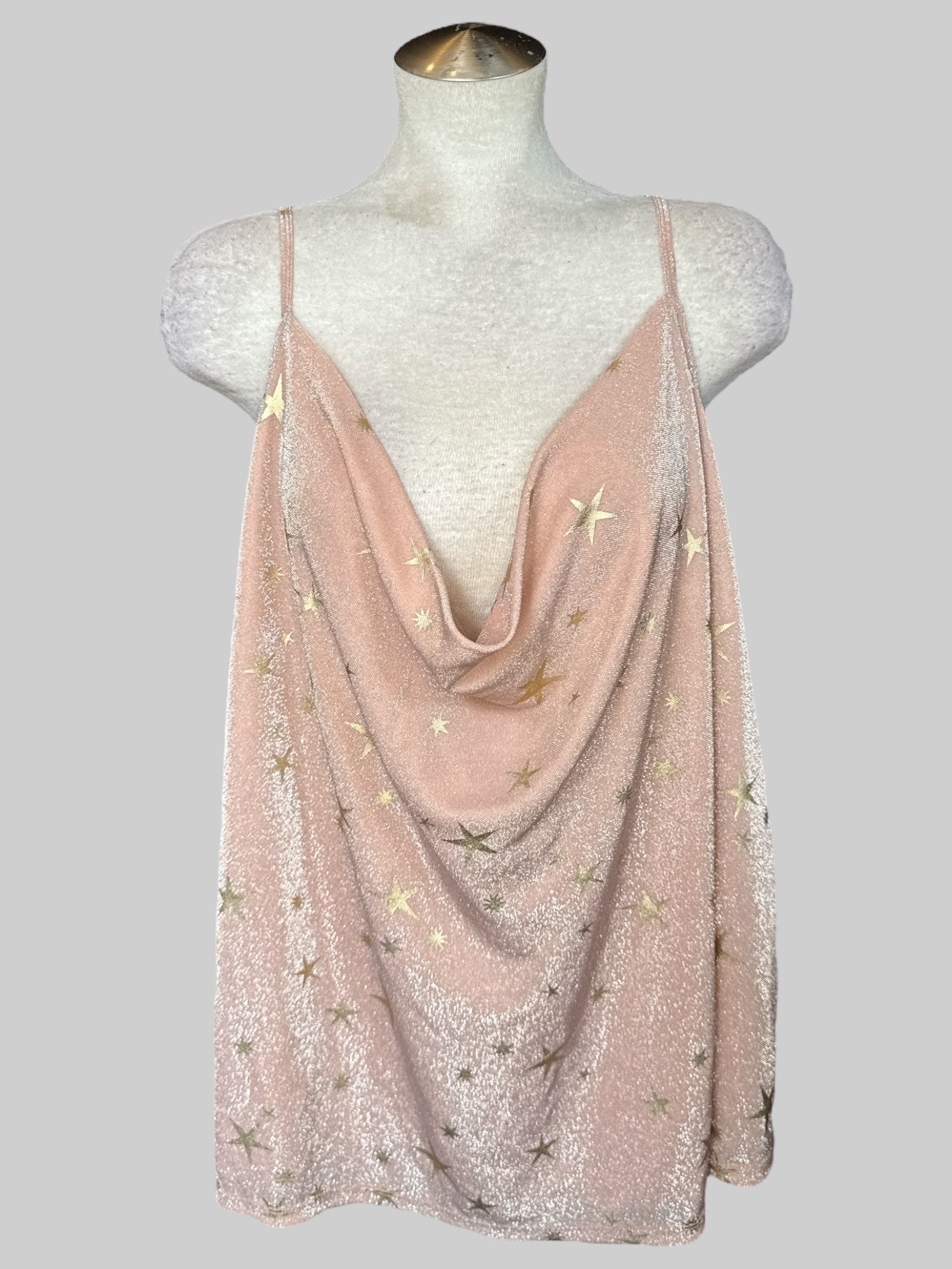 3X Dusty pink sleeveless top with swoop neck, and gold star and shimmery design