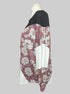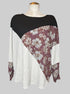 3X long sleeve top with part off white waffle knit, purple and white florals, and black