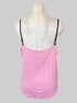 3X Pink sleeveless tank top with black straps and black lace and lacing details on front