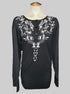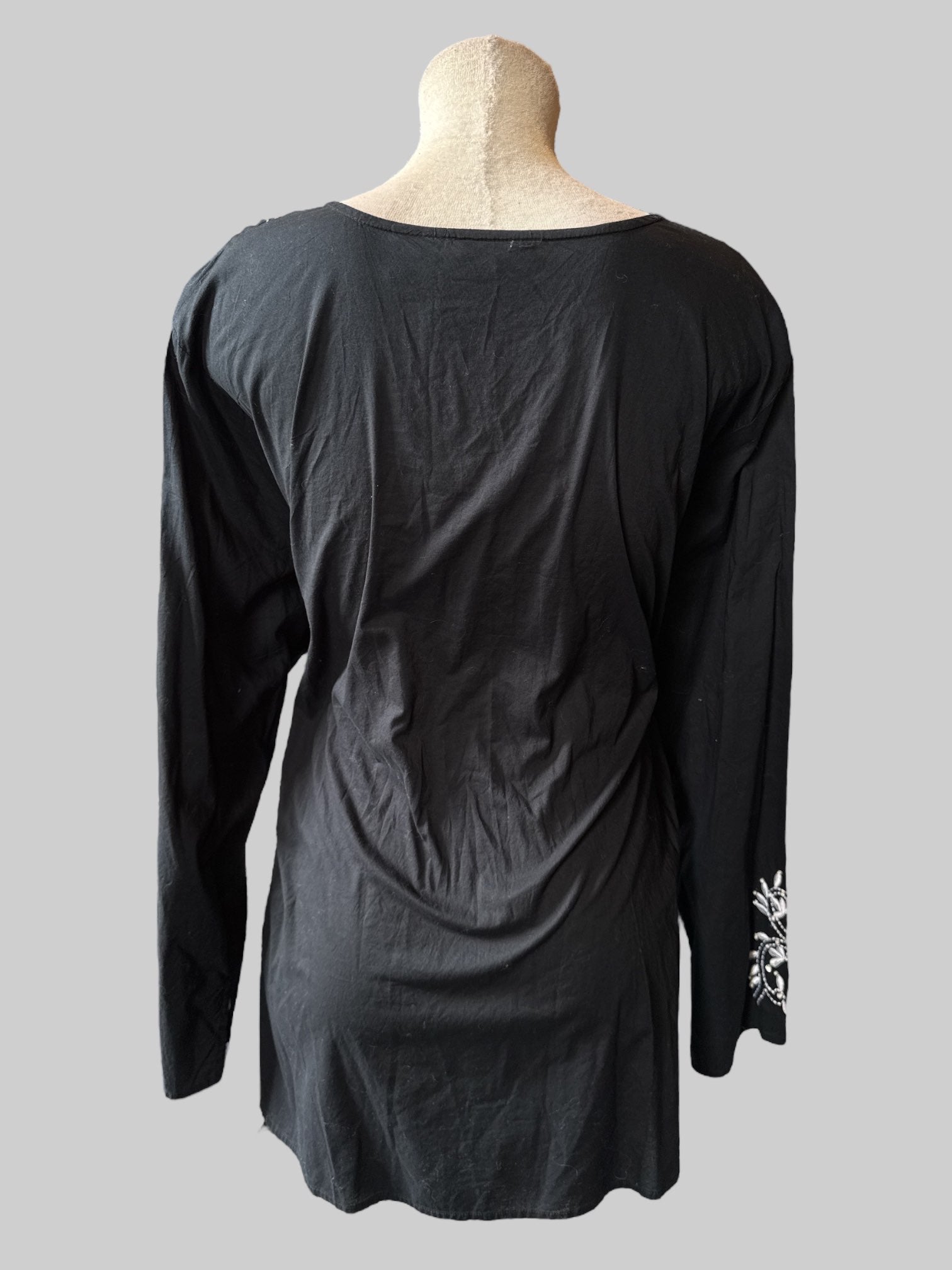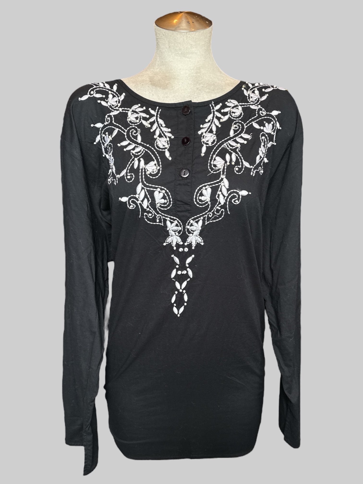 3X Vintage black long sleeve top with white embroidery and beads on chest and sleeves