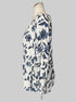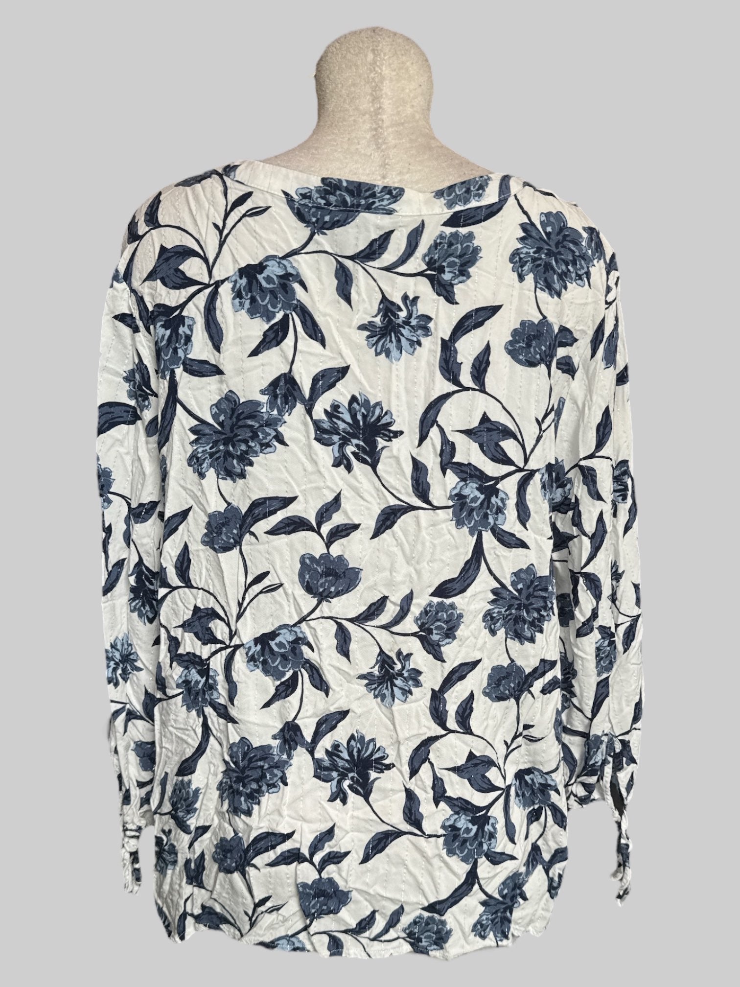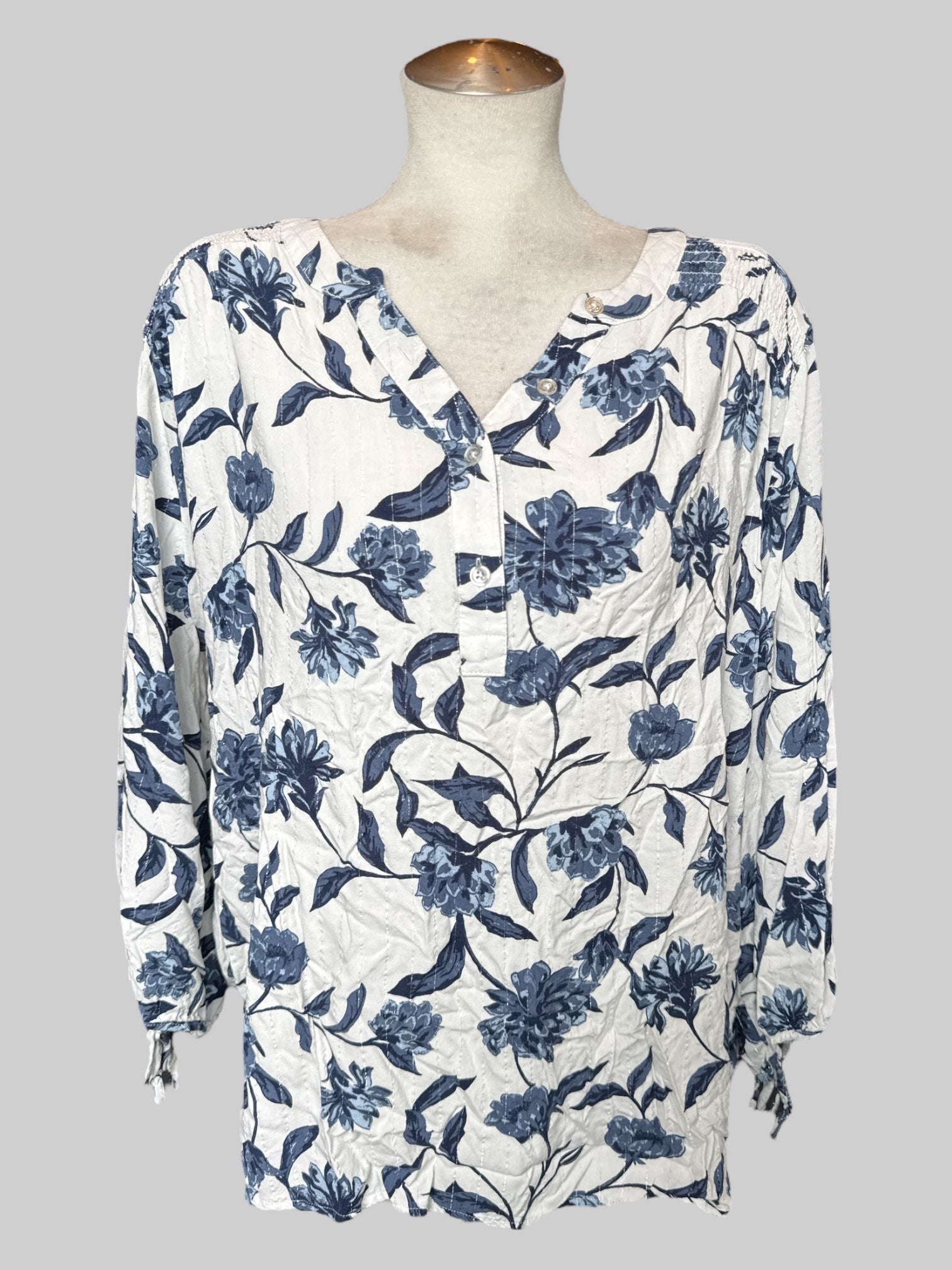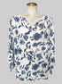 3X White flowy top with blue florals and silver tinsel