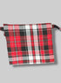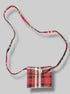 4.5’ little green, white, red, black, and metallic plaid purse with button