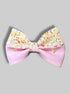 4” Pink leather bow with pin and clasp on back, and icing with sprinkle design