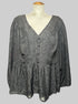 4X black long sleeve blouse with velvet burnout florals, shirred back, and sheer balloon sleeves