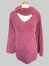 4X burgundy turtleneck sweater with chest cut out, cut outs on sleeves, and flare sleeves
