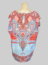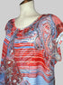 4X Flowy white blue and red top with paisley patterns, stripes, and shear layers in front
