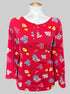 5X Red long sleeve shirt with blue, yellow, pink, black and white florals