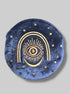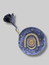 6’ velvet blue pouch with evil eye embroidery and fringe tassel on zipper