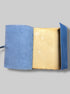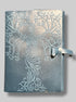 7” by 4.5” blue leather bound tie journal with owl embossing