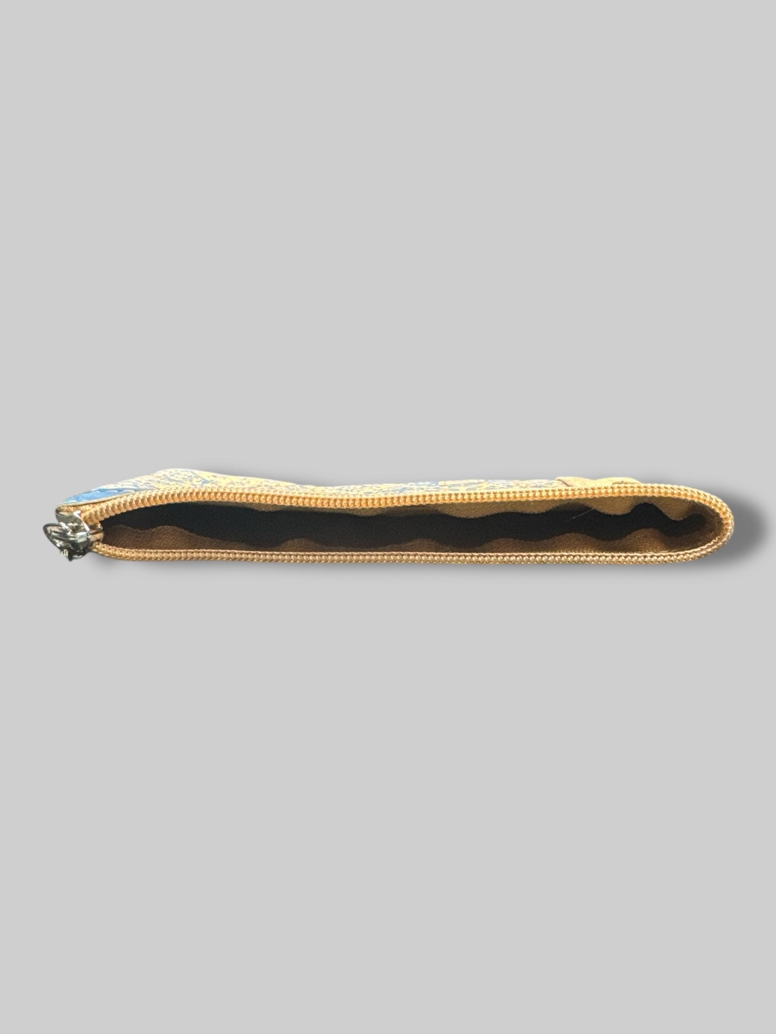 7’ by 4’ pouch made of cork with blue tiled mosaic pattern