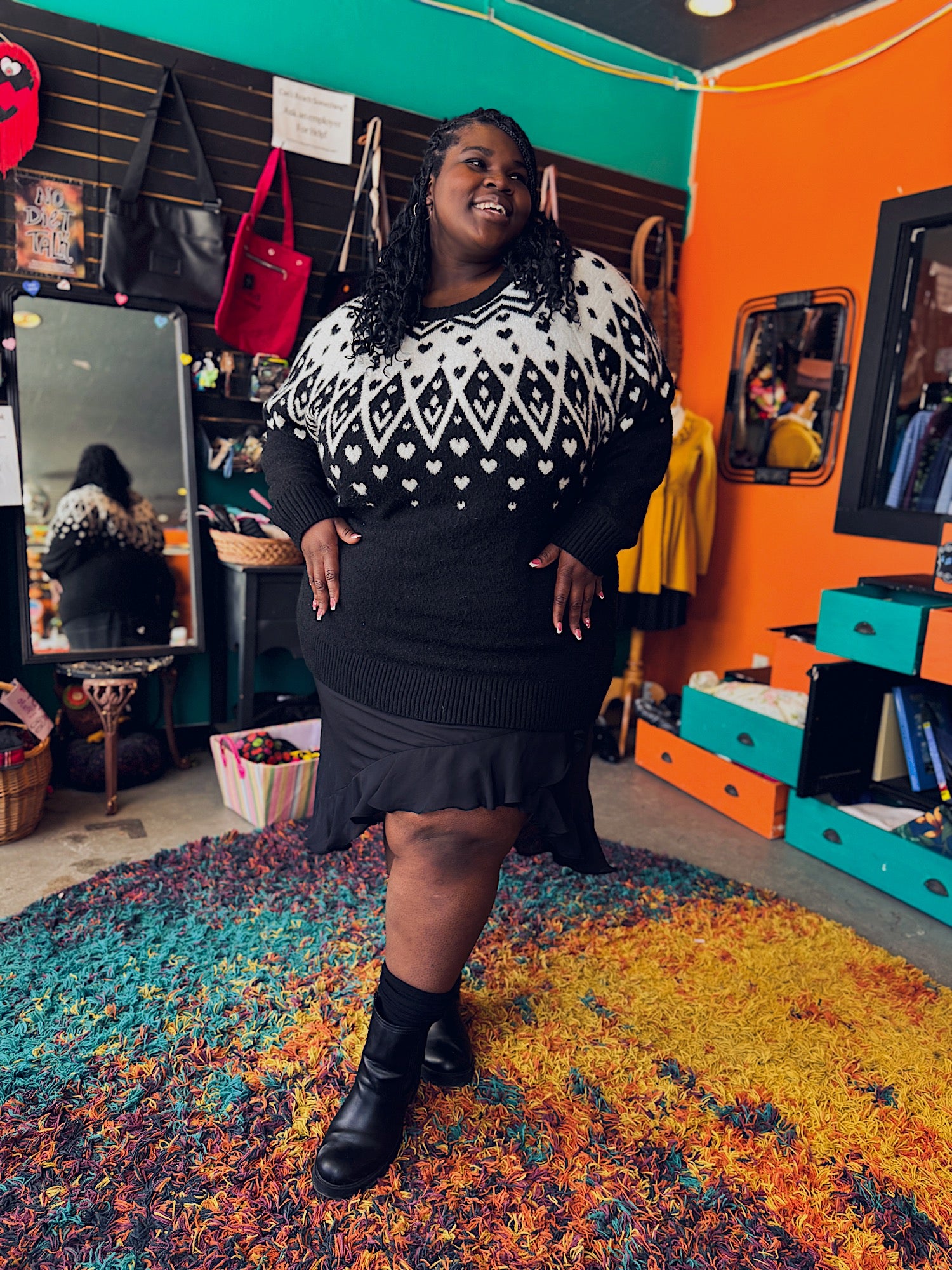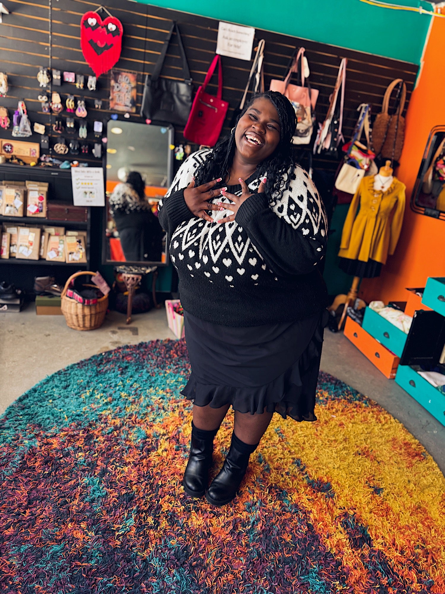 At Witch Bitch Thrift, we measure everything by hand and list sizes based on actual garment measurements (like bust, waist, hips, and stretch).