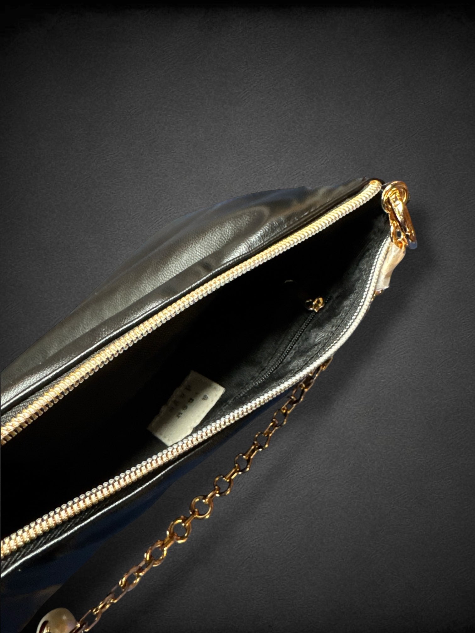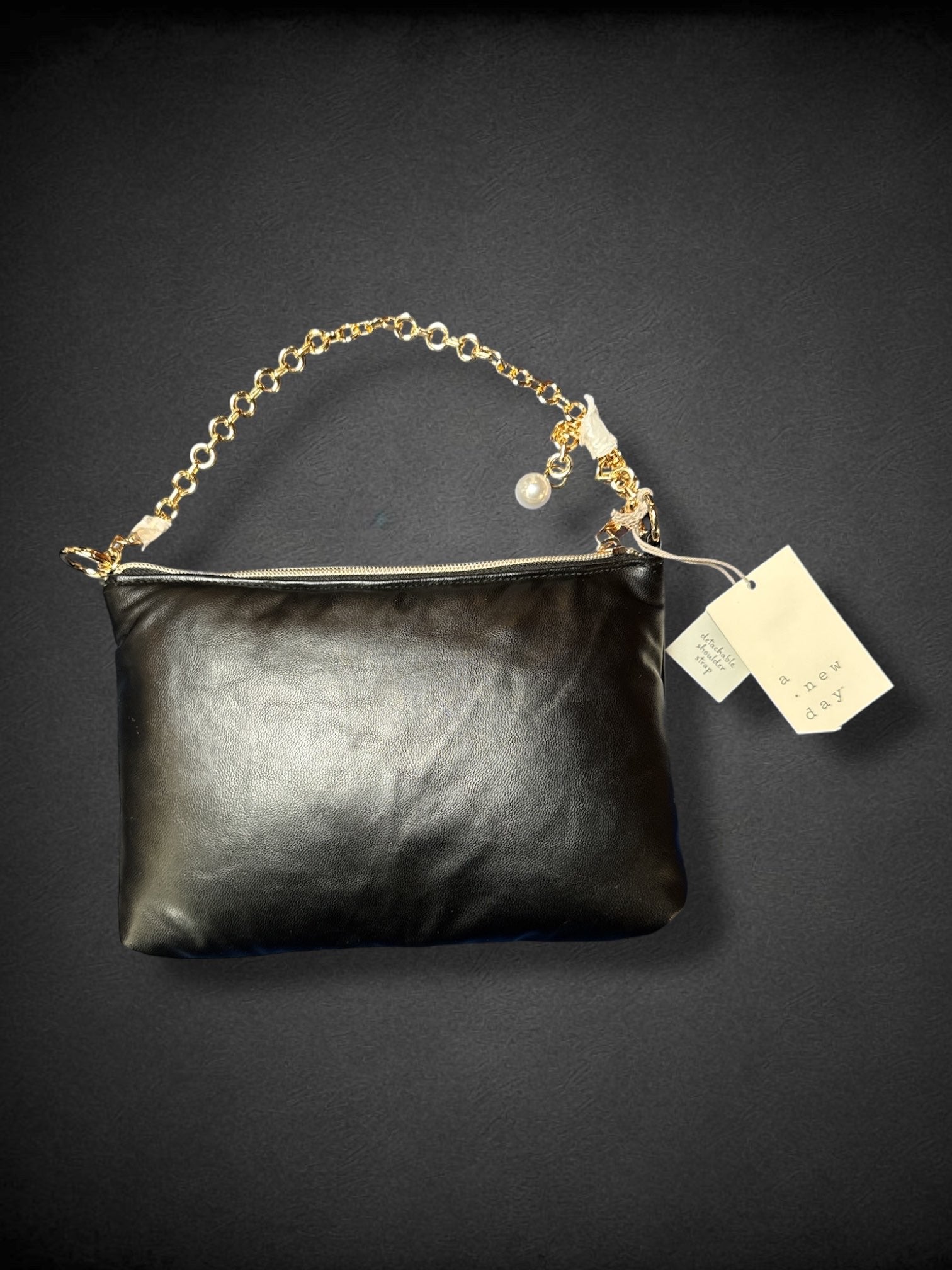 A New Day NWT 8”x5” Black Faux Leather Purse with gold toned zipper and detachable shoulder chain