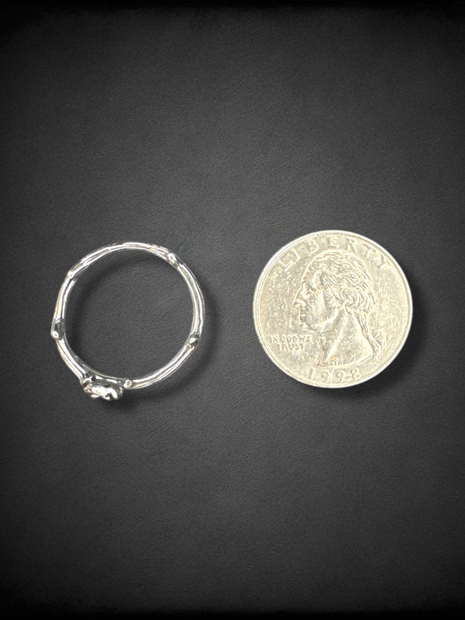 Adjustable silver tone thorn and rose ring