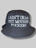 Black bucket hat with “I ain’t dead yet motherfuckers“ print