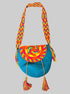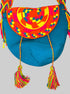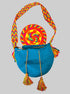 Blue knit bag with beautiful multicolor knit straps and tassels