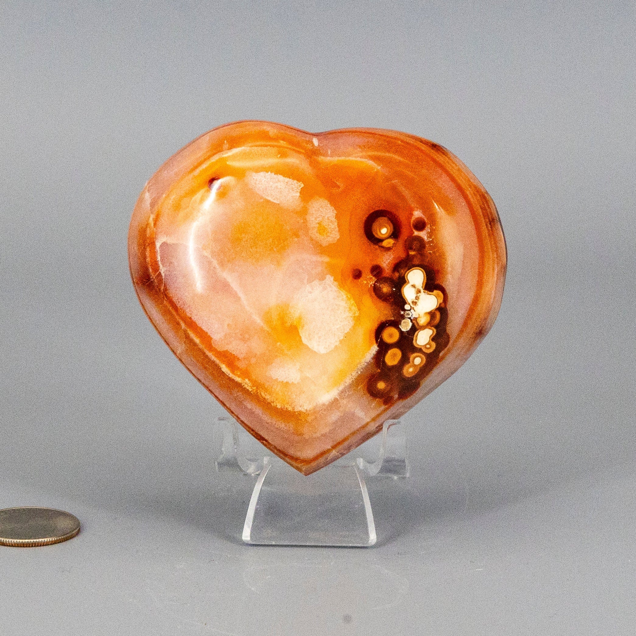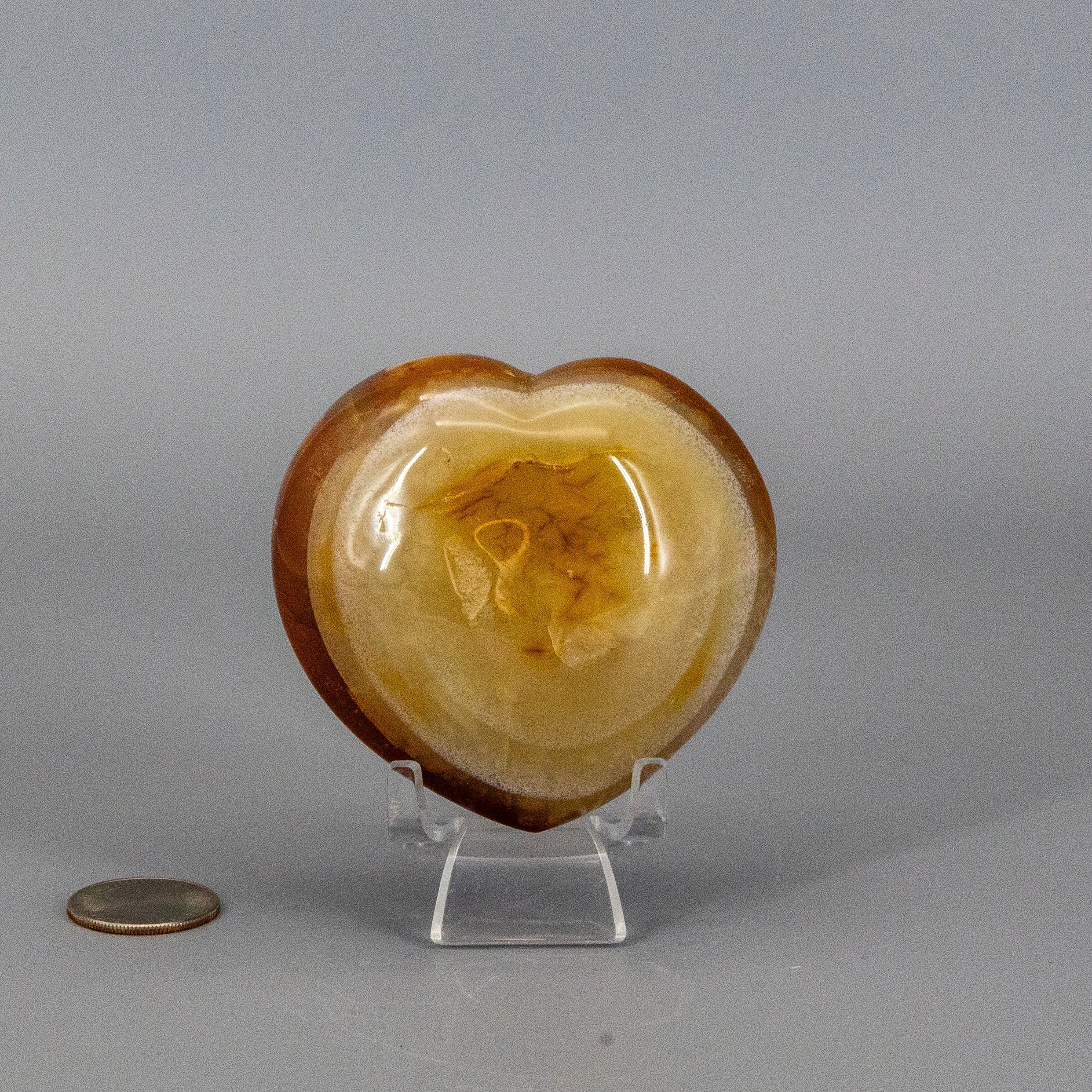 The Carnelian Agate Heart is a beautifully polished gemstone shaped into a heart, showcasing the rich, warm hues characteristic of carnelian. Known for its grounding and energizing properties, this piece is ideal for those seeking to enhance creativity, motivation, and emotional balance. Its smooth surface and vibrant color make it a perfect addition to any crystal collection or a meaningful gift for loved ones. Crafted with care, the Carnelian Agate Heart combines natural beauty with metaphysical benefits for expert collectors and enthusiasts alike.