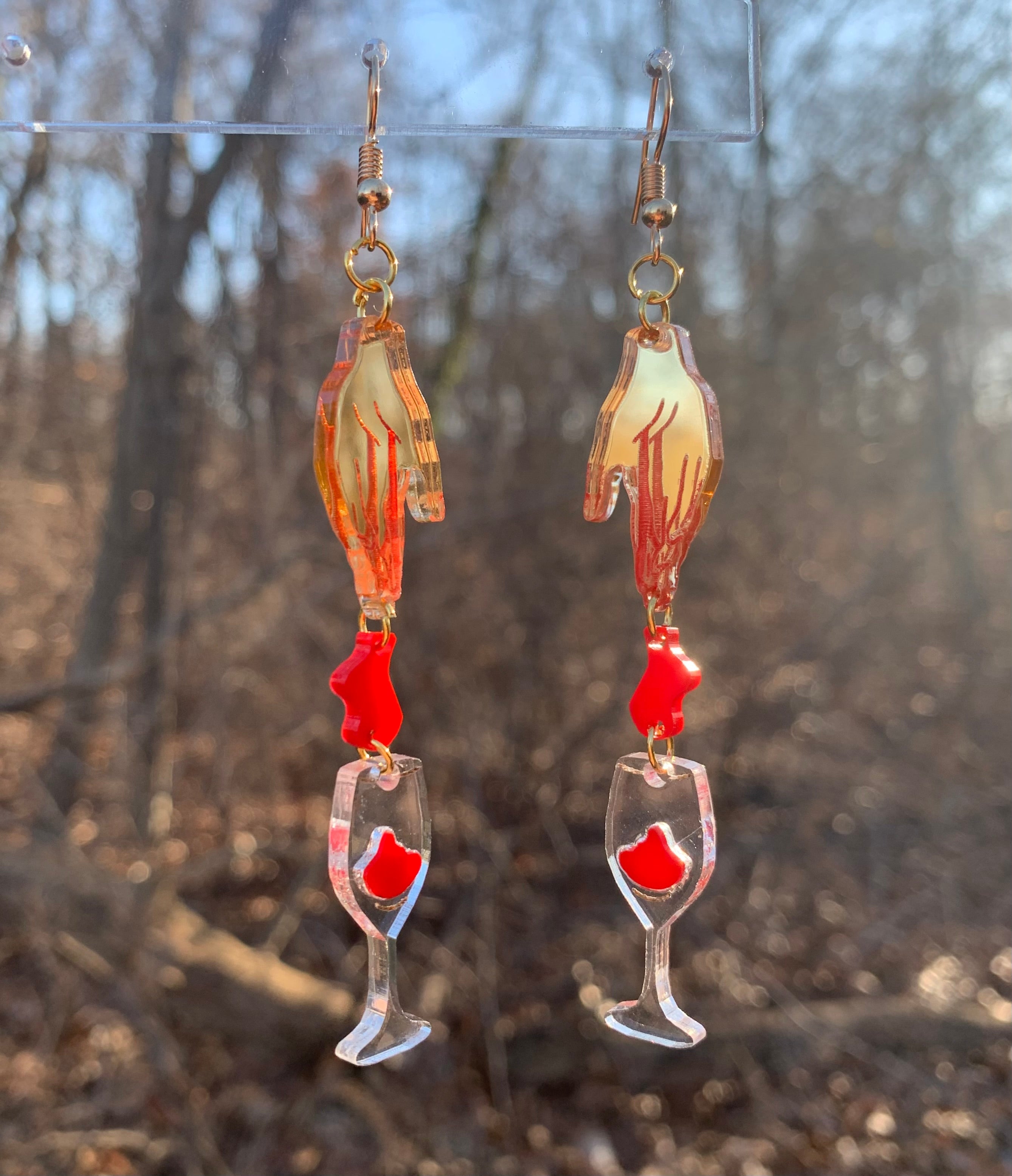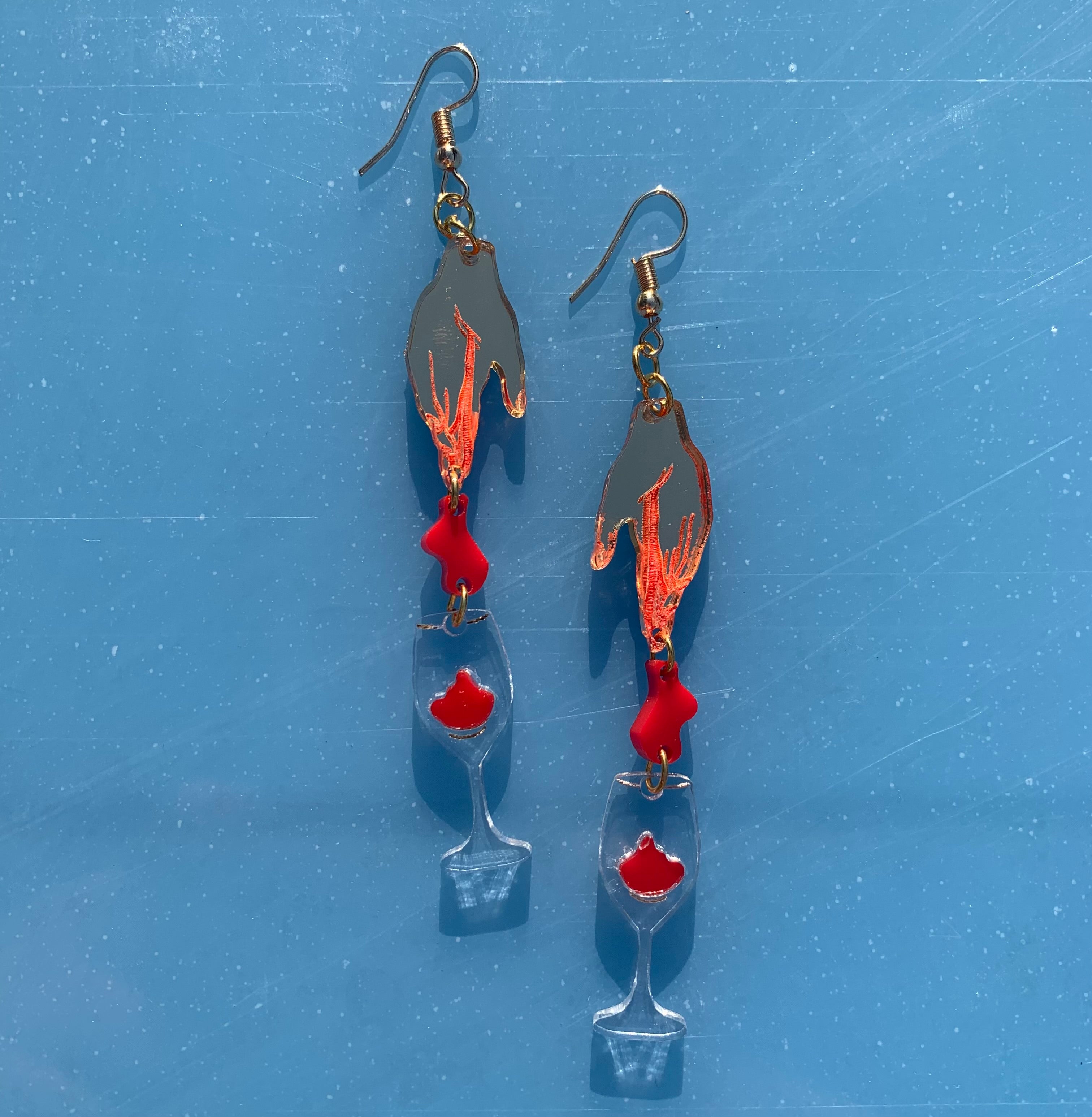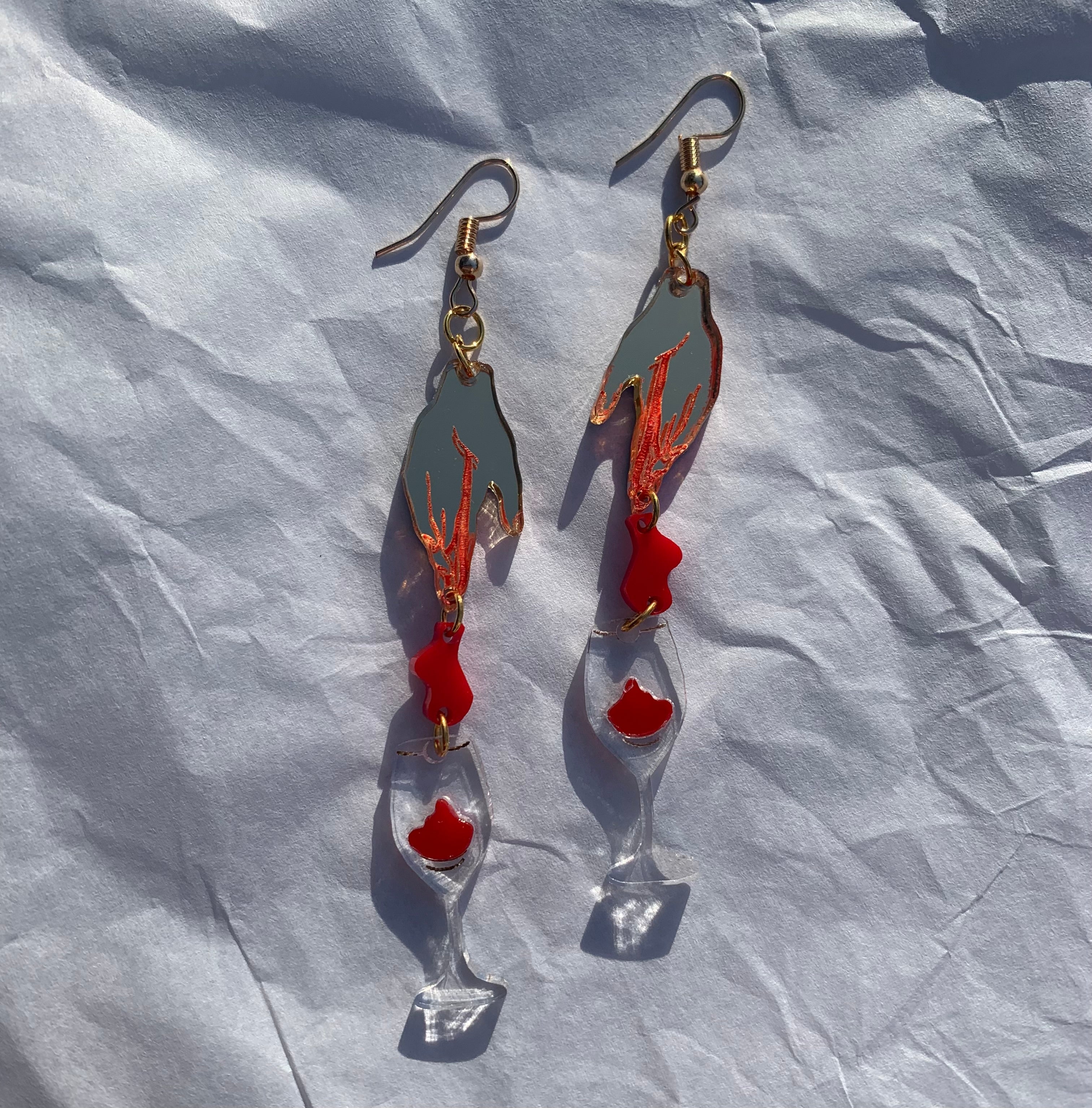 These earrings were inspired by the song ‘Cherry Wine’. I struggled a lot with this design and actually wasn’t super fond of it!! I sent it to a few friends and asked what they thought and they said it was their favorite design so far…. These little earrings helped me to trust my creative vision! They’re the most literal of all of the designs, the hand, the blood, the wine- but I think that adds a certain magic to them!