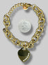 Gold metal chain bracelet with heart pendant with bedazzling