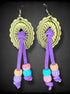 Gold tone metal and purple ties with plastic beads