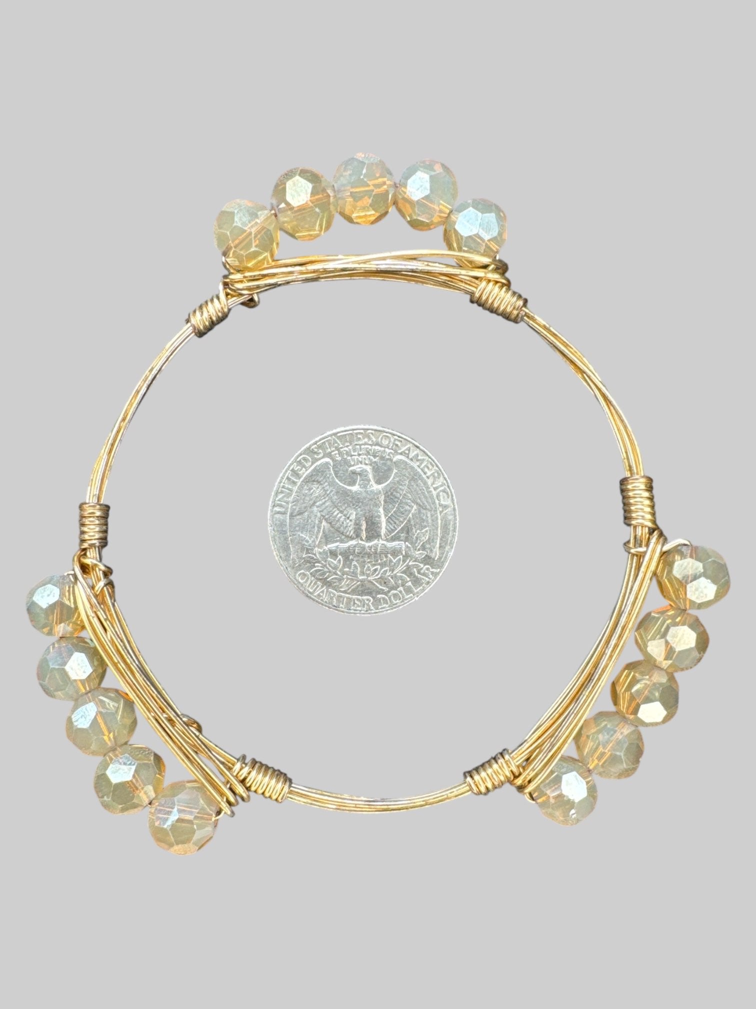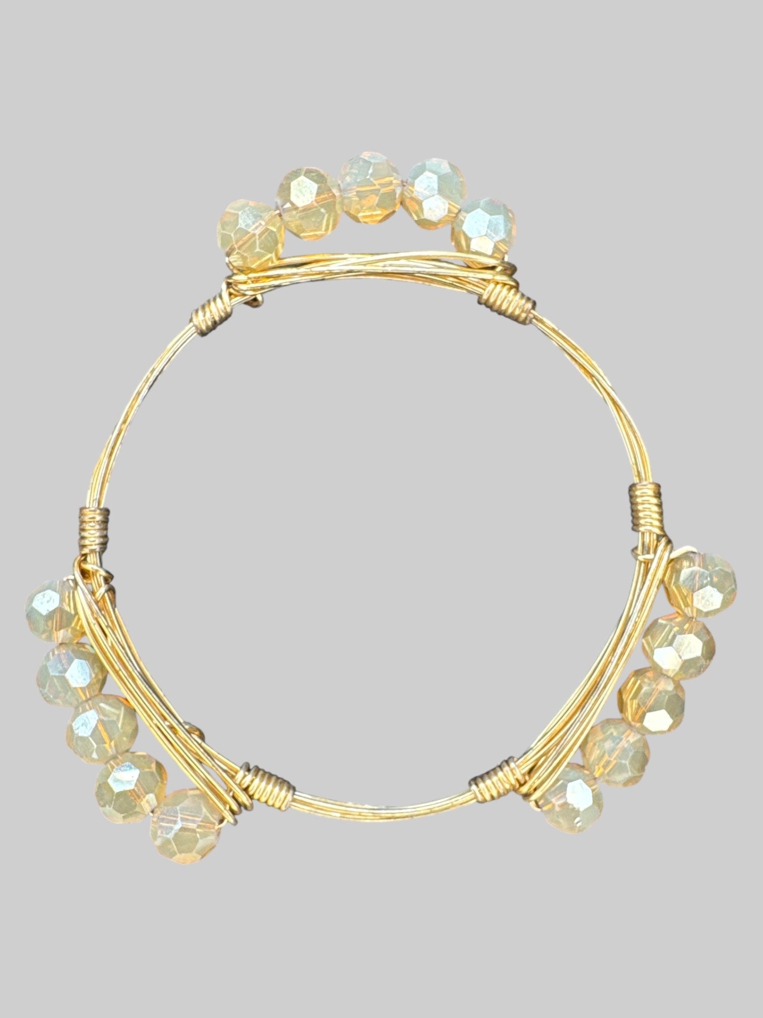 Gold tone wire wrapped bracelet with smoky colored beats