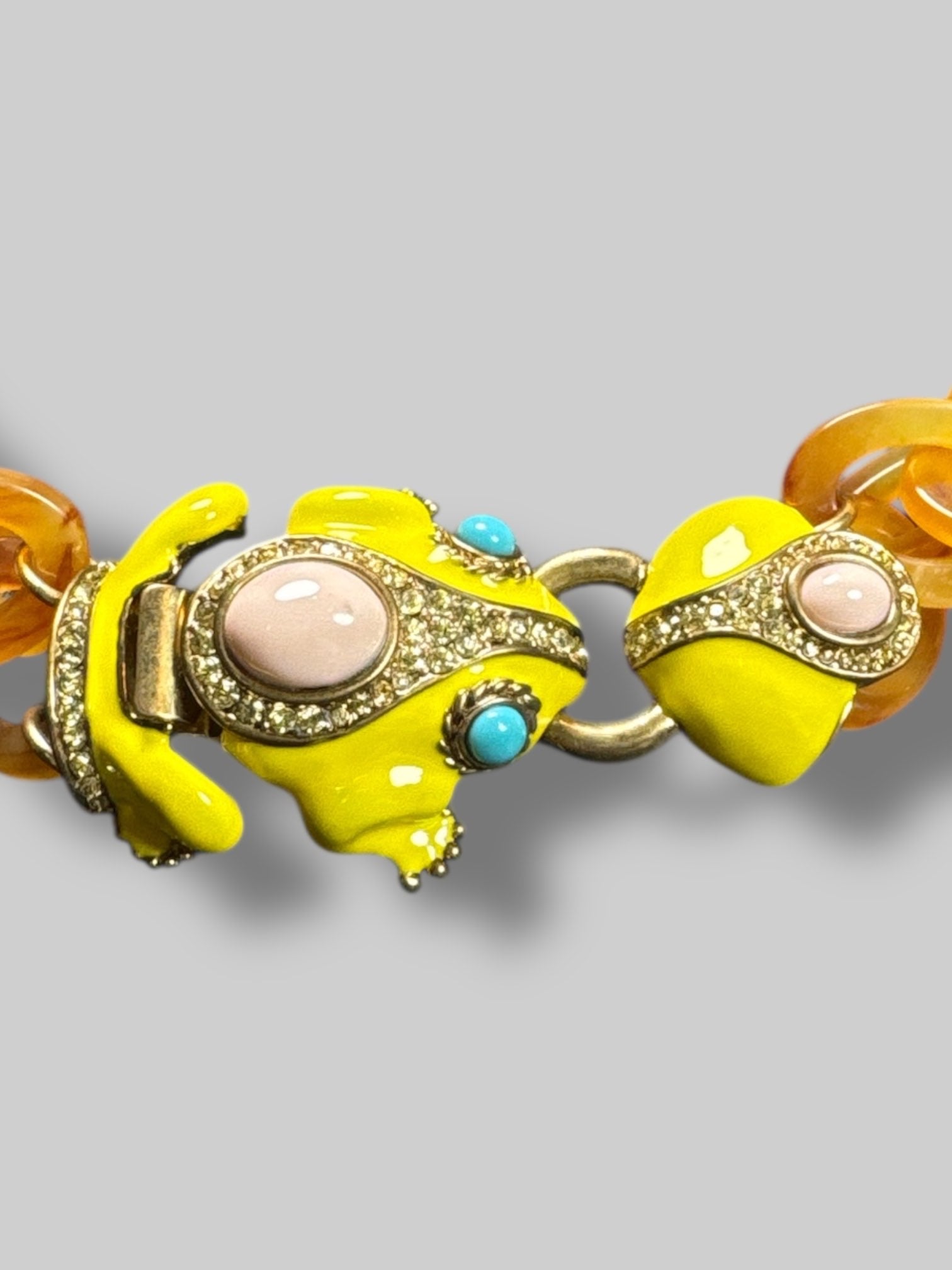 J. Crew tortoise shell chain necklace with yellow rhinestone frog clasp
