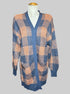 L American Eagle navy blue & dark orange plaid knit cardigan with pockets